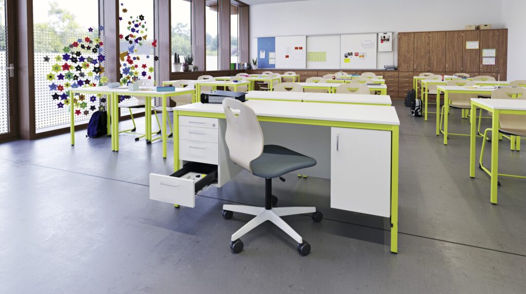 Mūsdienīgi un funkcionāla dizaina galdi skolotājiem veicina pozitīvu un profesionālu atmosfēru skolā. Galdi ar plašu virsmu, kas ļauj ērti izvietot mācību materiālus, datorus, rakstāmpiederumus un citas nepieciešamās lietas. Vai kompakti tribīnes tipa mobili galdi. Iespējas ir plašas visa veida mācību procesam. Vairak…